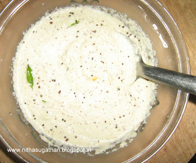 Tranfer them to a bowl.Splutter Mustard, red chillies and curry leaves and add to the chutney.